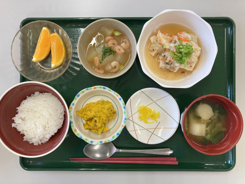 ・かぶら蒸し ・南瓜とさつま芋のサラダ ・冬瓜えびあんかけ ・きざみたくあん