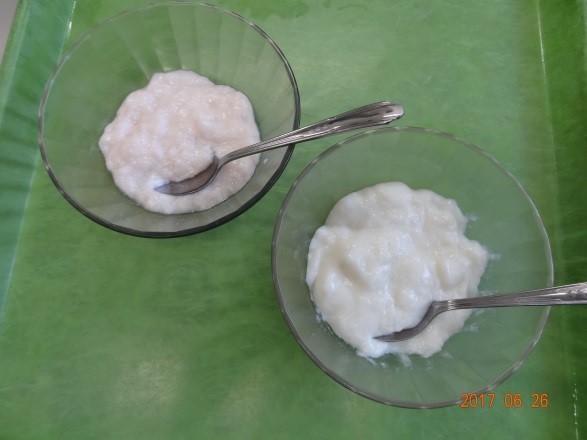 手作りおやつ:フルーチェ2種(イチゴ味・モモ味) (T記)